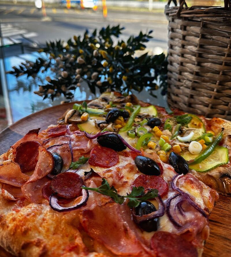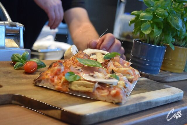 Pizza Capriciosa este o pizza clasică, încărcată cu ingrediente savuroase și plină de arome. Această pizza este iubită de mulți datorită combinației echilibrate de ingrediente proaspete și gustoase. Baza acestei pizza este alcătuită dintr-o crustă subțire și crocantă, care este acoperită cu un sos delicios de roșii. Deasupra sosului de roșii, se adaugă un strat generos de mozzarella proaspătă, care se topește frumos și adaugă o textură cremoasă. Pe lângă mozzarella, pizza Capriciosa este îmbogățită cu o varietate de ingrediente. Printre acestea se numără salamul feliat, ciupercile proaspete și aromatice, măslinele negre și ardeii copți. Aceste ingrediente se combină perfect pentru a oferi o explozie de arome și o senzație de satisfacție în fiecare mușcătură. Pizza Capriciosa este o alegere potrivită pentru cei care apreciază o varietate de ingrediente pe pizza lor. Combinarea salamului, ciupercilor, măslinelor și ardeilor adaugă o varietate de arome și texturi, oferind o experiență gustativă complexă și satisfăcătoare. Indiferent dacă o savurați la un prânz rapid sau o comandați pentru o seară relaxată acasă, pizza Capriciosa vă va încânta cu siguranță papilele gustative și vă va oferi o experiență autentică de pizza italiană. Vă invităm să încercați pizza Capriciosa la pizzeria noastră și să vă bucurați de gustul savuros și autentic al acestei preparate clasice. Veți descoperi de ce este atât de apreciată și veți avea parte de o experiență culinară de neuitat.